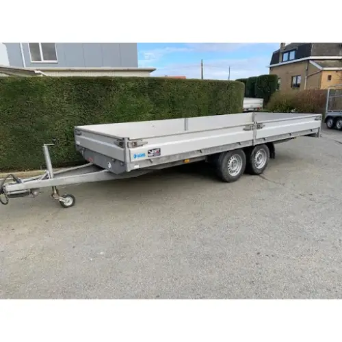 De aanhangwagen tandemasser van 5 meter wordt ook wel plateauwagen genoemd. De aanhanger is erg handig om te huren voor het vervoeren van lange materialen. Bovendien is de aanhanger makkelijk met laden en lossen vanwege de meerdere zijkleppen.
