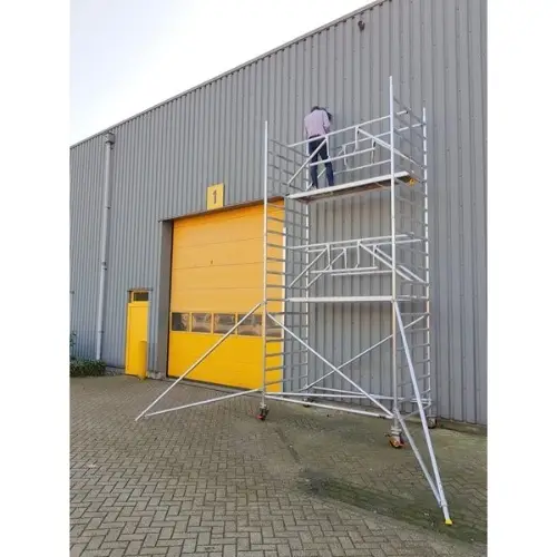 Het brede aluminium rolsteiger is ideaal om te huren voor verschillende klussen. Je staat stevig op het steiger maar bent ook wendbaar door de verstelbare wielen. Een steiger is onmisbaar bij het schilderen op hoogte, onderhouds- werkzaamheden en installatie- werkzaamheden.