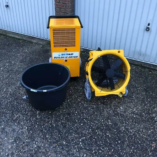 Bouwdroger 75 liter huren? De bouwdroger is ideaal om te huren voor het drogen van muren, plafonds en vloeren. Een bouwdroger is een populaire machine die wordt gebruikt voor het ontvochtigen van een ruimte. Bouwdrogers worden vaak bij nieuw- en verbouw toegepast, maar ook bij waterschade zijn ontvochtigers zeer geschikt om ingezet te worden.
