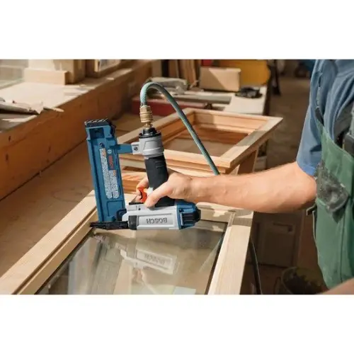 Het bradapparaat is ideaal om te huren voor afwerk werkzaamheden zoals het aanbrengen van spijkers in plinten en kozijnen. Met de tacker schiet je eenvoudig spijkers of nietjes in materiaal.