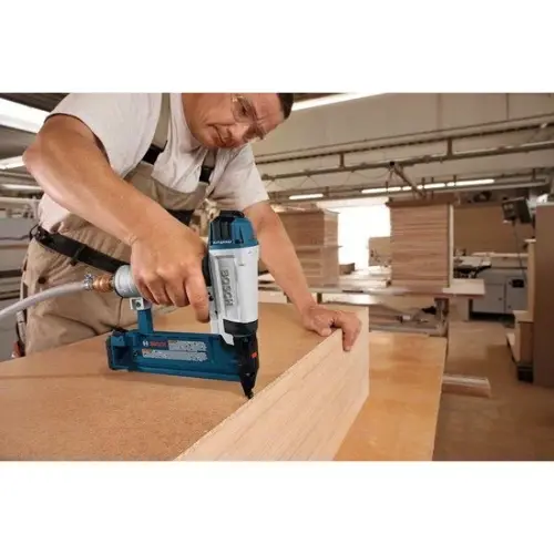 De bradmachine heeft een laag geluidsniveau en een comfortabel handvat. Ook is het mogelijk om de slagdiepte in te stellen. Hiermee wordt voorkomen dat de spijker te diep wordt geslagen en het materiaal beschadigt.
