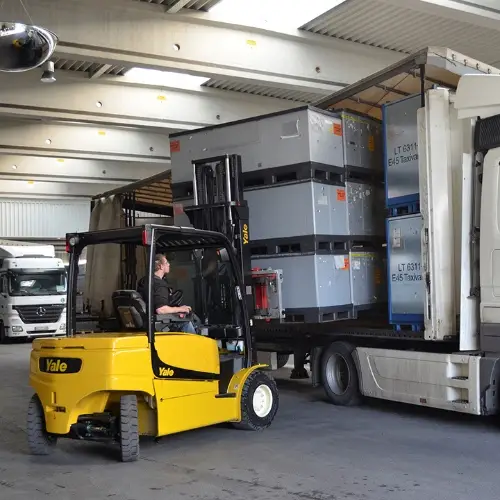 Je kunt deze elektrische heftruck het beste vervoeren met de transportservice van GECO. Dit vindt plaats dan met de vrachtwagen. Geef dit aan bij je reservering.