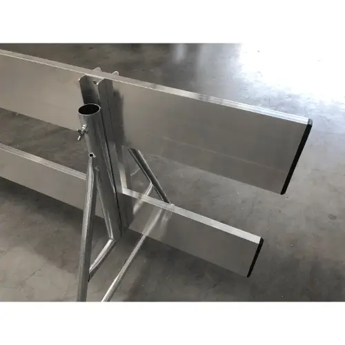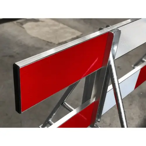 Dit afzethek, schrikhek of verkeershek bestaat uit twee aluminium kokerprofielplanken van anderhalve meter. Een van de kenmerken van onze afzethekken is de verbinding, die aluminium is gelast. Hierdoor is dit schrikhek uiterst robuust. Bovendien is dit verkeershek licht in gewicht.