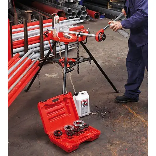 Het draadsnijset is ideaal om te huren voor het handmatig draadsnijden op stalen buizen. Het handzame en draagbare apparaat maakt het mogelijk om schroefdraad te tappen. Perfect materiaal voor jouw loodgietersklus!