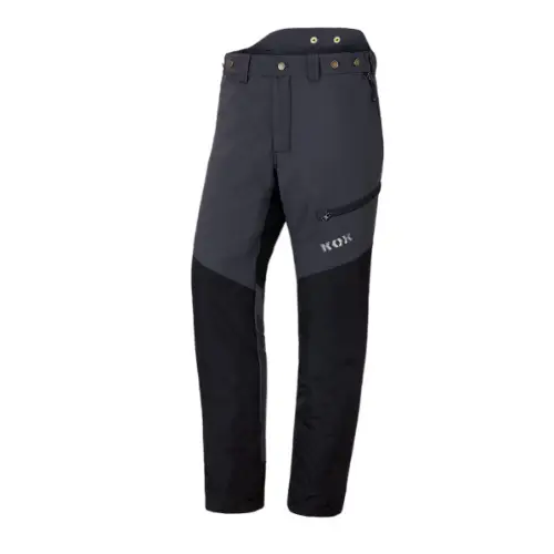 Een zaagbroek is gevuld met stevige vezels en op plekken die extra risico lopen, zoals de onderbenen, voorzien van verstevigingen. Daardoor beschermt de broek tegen lichamelijk letsel door rondvliegend gruis.