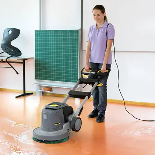Schrobmachine Ø 430 mm huren? De schrobmachine met diameter 430 mm is ideaal om te huren voor het schrobben en boenen van vrijwel alle soorten vloeren. Het is een ideale machine om te huren wanneer je een vloer diep wilt reinigen of desinfecteren.
