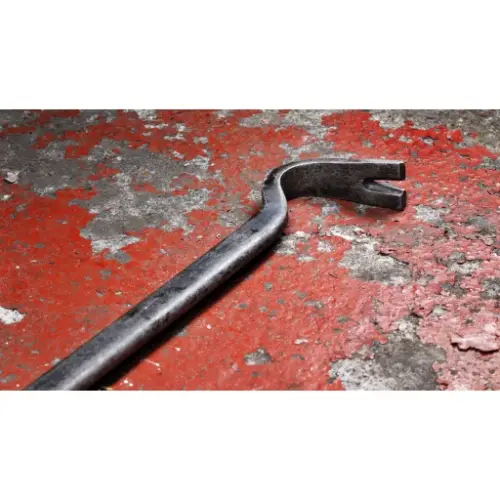 Met dit breekijzer kun je vele dingen los- en openwrikken. De gespleten kant steek je ergens onder, en na enig wrikken is de boel los.