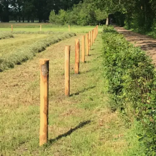 Om palen in de grond te slaan, kun je eerst de lijn uitzetten. Om vervolgens gaten te boren langs die lijn. Daarna zet je de palen rechtop in de gaten en sla je met de palenrammer de palen vast. Hier vind je het hele stappenplan voor palen in de grond slaan.