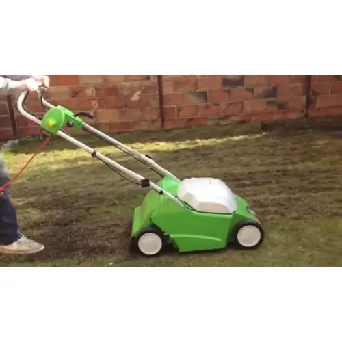 De elektrische verticuteermachine is een praktische keuze om het gazon in kleine tuinen met stroomaansluiting te onderhouden. De werkdiepte stel je eenvoudig in met de draaischakelaar op de duwboom. Verder geven de licht lopende wielen hoge spoorvastheid. Hierdoor kun je op een comfortabele manier verticuteren. Als je de elektrische verticuteermachine wilt verplaatsen, zet je de verticuteereenheid gewoon met de hendel omhoog. Met 27 kg is de verticuteermachine probleemloos te verplaatsen. De verticuteermachine kan dankzij de inklapbare duwboom vervoerd worden zonder veel plaats in te nemen.