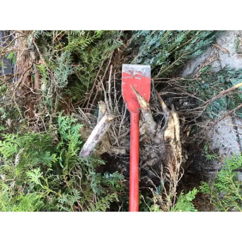 Wat moet je doen als je oude coniferen of kleine boompjes uit de tuin wilt halen? Daarvoor hebben wij de wortelbijl. Ook wel boomwortelsteker, wortelsteker, wortelbijl genoemd. Een wortelbijl is een zwaar stootijzer die is voorzien van een brede plat gesmede bek. Het gewicht van deze bijl is ruim 8 kilogram en de lengte is iets meer dan 1200mm. Door combinatie van lengte en gewicht het ideale stuk gereedschap om de wortels door te steken in plaats van uit te graven.