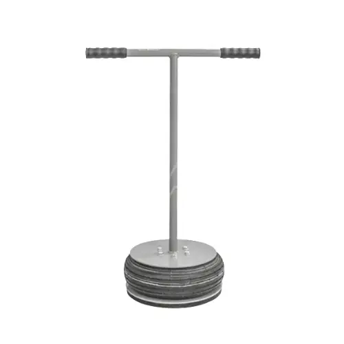 Tegeltiller huren? De tiller voor tegels is uitgevoerd met een band waaraan een metalenplaat is bevestigd.