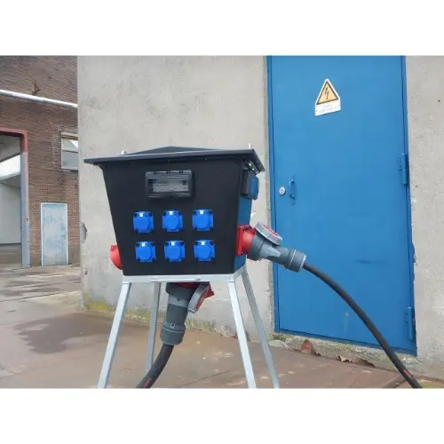 Verdeelkast 63 A huren? Een verdeelkast is ideaal om te huren om bijvoorbeeld op een bouwplaats stroom en meerdere apparaten goed op elkaar aan te laten sluiten. Een verdeelkast houdt de stroom vanaf een aggregaat of andere stroomvoorziening onder controle, waarmee je kortsluiting voorkomt.