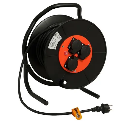 Daarnaast is deze kabelhaspel van 25 meter lengte, sinds jaar en dag het topmodel voor bouw en industrie. De haspel heeft een vernieuwde 4-voudige contactplaat met spatwaterdichte contactdozen (IP44) met verende klepdeksels. Bovendien is de kabelhaspel zeer robuust, gebruiksvriendelijk en zowel binnen als buiten toepasbaar. Dankzij de afmetingen van 410 x 340 x 200 mm, kun je haspel eenvoudig meenemen. De soepele neopreen kabel heeft een thermische beveiliging en aangespoten randaarde stekker.