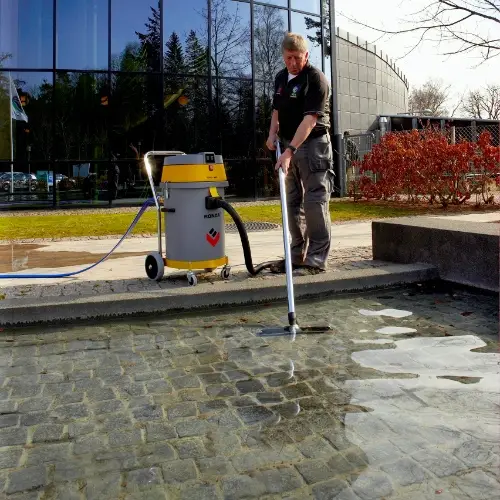 Je kunt met de waterzuiger, zoals het woord al zegt, water opzuigen. Je kan er nat vuil mee opzuigen. De waterzuiger is niet geschikt om brandbare materialen, giftige stoffen of zuren op te zuigen.